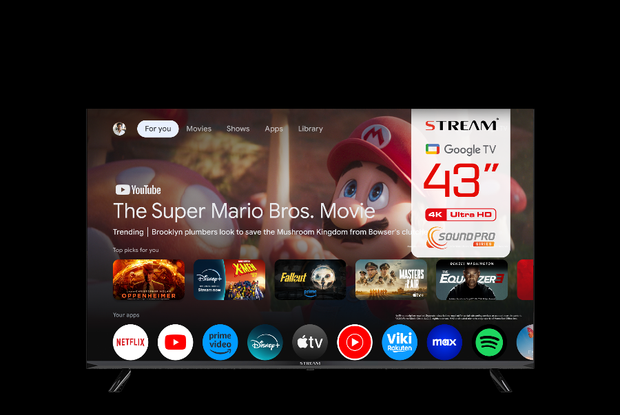 Smart TV STREAM 43" pouces, avec le système d'exploitation Google TV (certifié par Google) Android 14, qui offre un système de déviation personnalisé, grâce aux recommandations du contenu du profil de votre téléphone. Fiche technique ci-dessous correspond au produit de référence S43