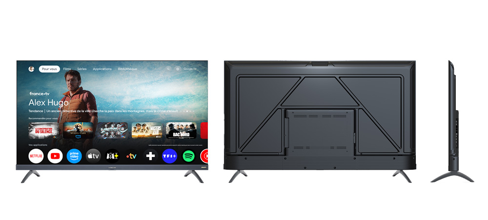 Smart TV STREAM 55" pouces, avec le système d'exploitation Google TV (certifié par Google) Android 14, qui offre une plateforme de divertissement personnalisée, grâce aux recommandations de votre profil personnel. La fiche technique ci-dessous correspond au produit de référence S55GTUSPRO ; il peut être indiqué qu'il existe des différences de prix pour les retours de