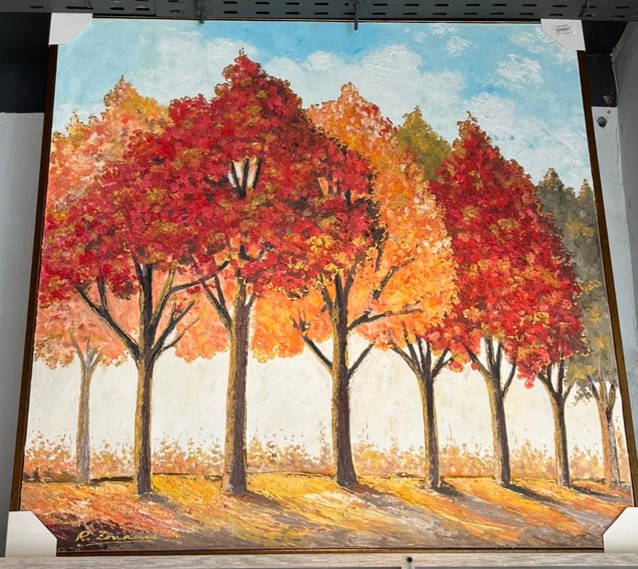 Ce tableau capture la beauté des arbres d’automne avec des couleurs chaudes et vibrantes. La texture riche rappelle la peinture à l’huile traditionnelle, donnant une profondeur remarquable à l’œuvre. Parfait pour créer une atmosphère cosy et a