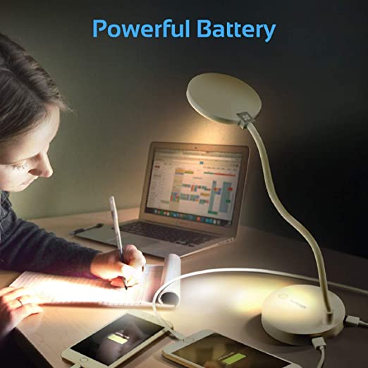 Lampe LED Promate, lampe de cou flexible LED portable avec capteur tactile lumière rechargeable et batterie externe 4000 mAh intégrée avec double port USB rapide 2,1 A pour étudier, maison, bureau, LumiFlex-2
