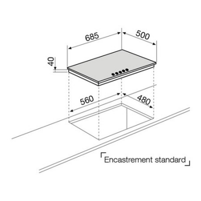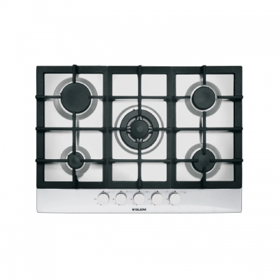GT755HIX | Tables émaillées et inox | Glem : Table gaz 70 cm 5 foyers gaz : - avant gauche : auxiliaire 1000 W - arrière gauche : rapide 3000 W - centre : triple couronne 3300 W - avant droit : semi-rapide 1750 W - arrière droit : semi-rapide 1750 W Puissance gaz totale : 10800 W Allumage une main Sécurité gaz par thermocouples Commandes frontales par manettes Grilles en fonte CARACTÉRISTIQUES TECHNIQUES : RÉFÉRENCE GT755HIX ÉNERGIE Émaillées et inox PUISSANCE 10800 W COULEUR Inox DIMENSIONS > 70 cm cm