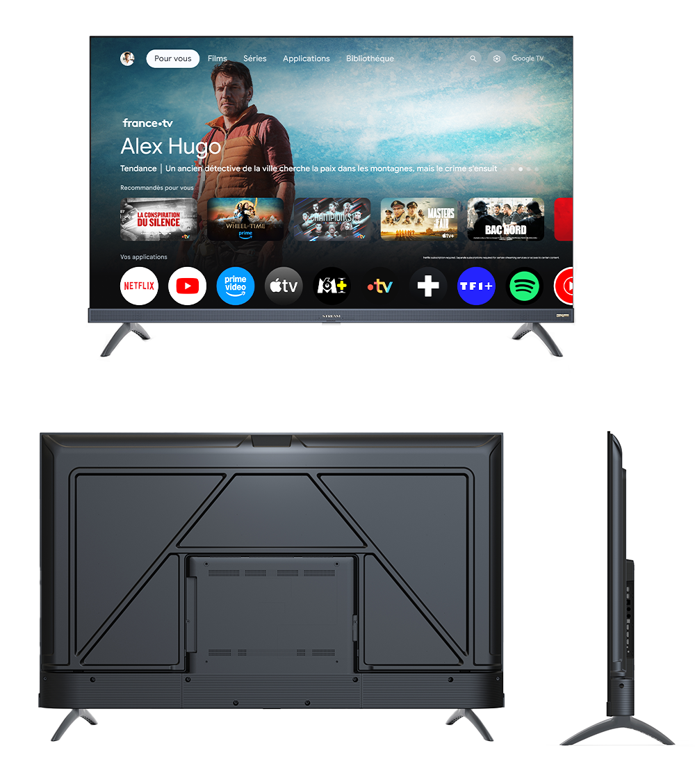 Smart TV STREAM 55" pouces, avec le système d'exploitation Google TV (certifié par Google) Android 14, qui offre une plateforme de divertissement personnalisée, grâce aux recommandations de votre profil personnel. La fiche technique ci-dessous correspond au produit de référence S55GTUSPRO ; il peut être indiqué qu'il existe des différences de prix pour les retours de
