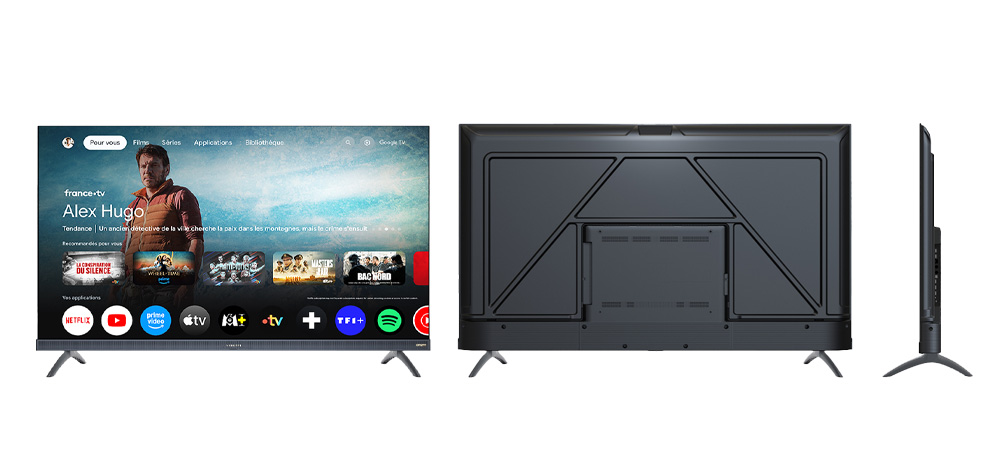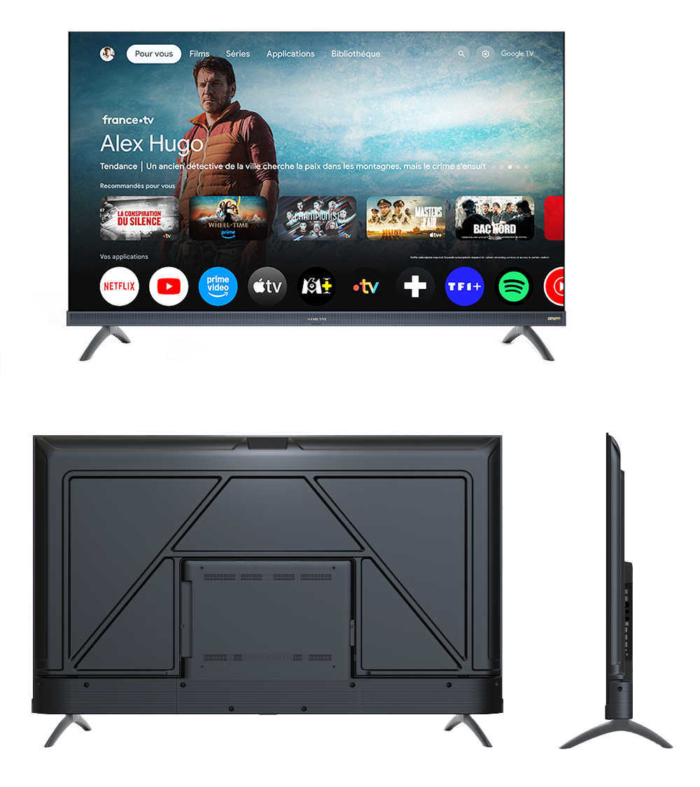 Smart TV STREAM 58" pouces, avec le système d'exploitation Google TV (certifié par Google), qui offre une plaque de déviation personnalisée, grâce aux recommandations du contenu du profil de votre téléphone. La technologie de la fiche ci-dessous correspond à la référence du produit S58GTU3 ; elle peut également être utilisée. Il est indiqué qu'il existe des différences dans certaines valeurs pour les référe