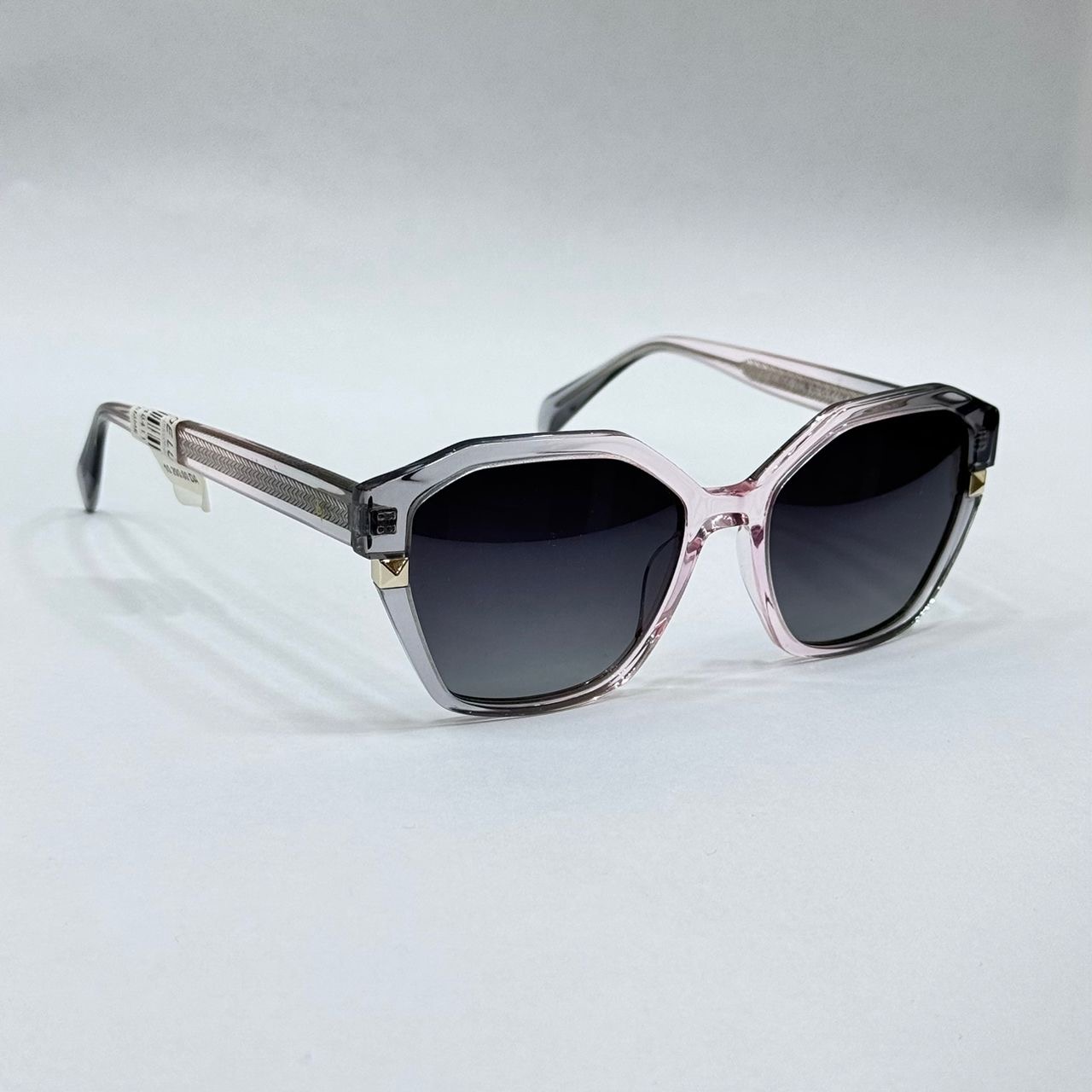 Cette paire combine la forme carrée moderne avec une subtile inspiration œil-de-chat, donnant une allure féminine et sophistiquée. La monture noire brillante et les verres mauves dégradés apportent une touche élégante et intem