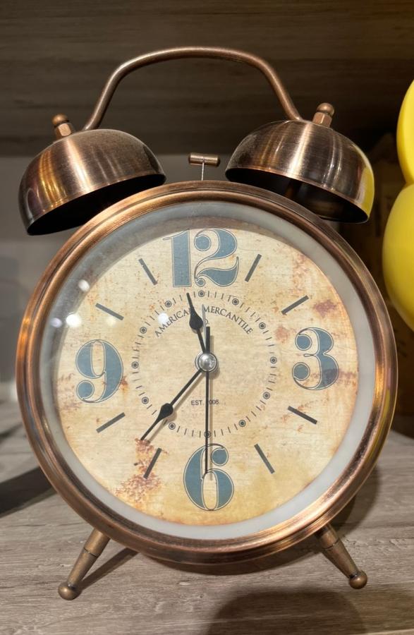 Réveil décoratif au style rétro en finition bronze vieillie, équipé d’une double cloche qui lui donne un charme authentique. Son cadran vieilli avec de grands chiffres le rend lisible et idéal pour une chambre, un salon ou comme pièce décorative sur une étagère. Un modèle parfait pour apporter une touche vintage et chaleureuse à vo