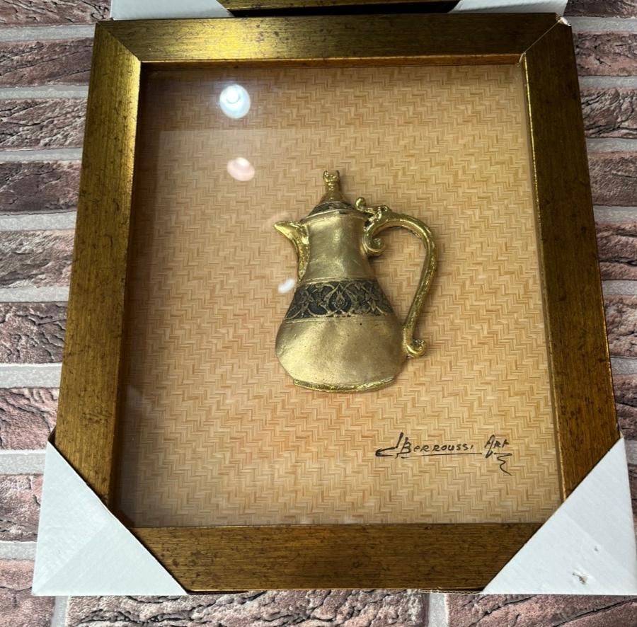 Ce cadre met en lumière un objet artisanal traditionnel, présenté en relief et rehaussé d’une finition dorée. Un accessoire décoratif raffiné qui apporte caractère et aut