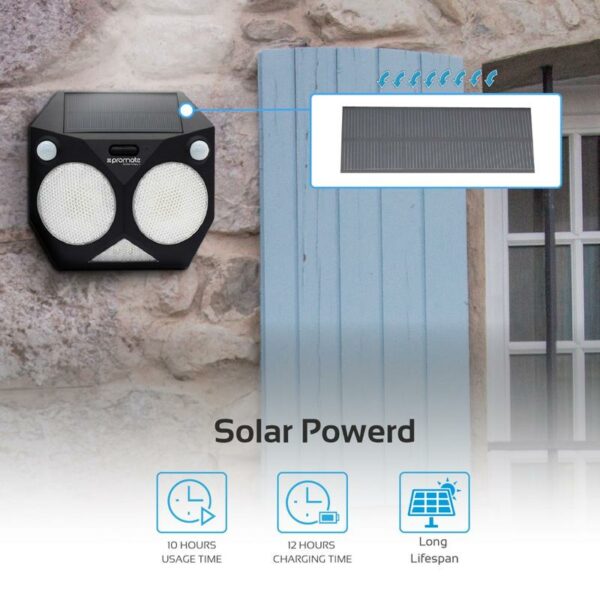 Lampe d’extérieur Promate Solarway-10 8 couleurs changeantes -Batterie rechargeable à énergie solaire -Plage de détection large de 180 degrés-IP65 Waterproof -Entièrement sans fil sans