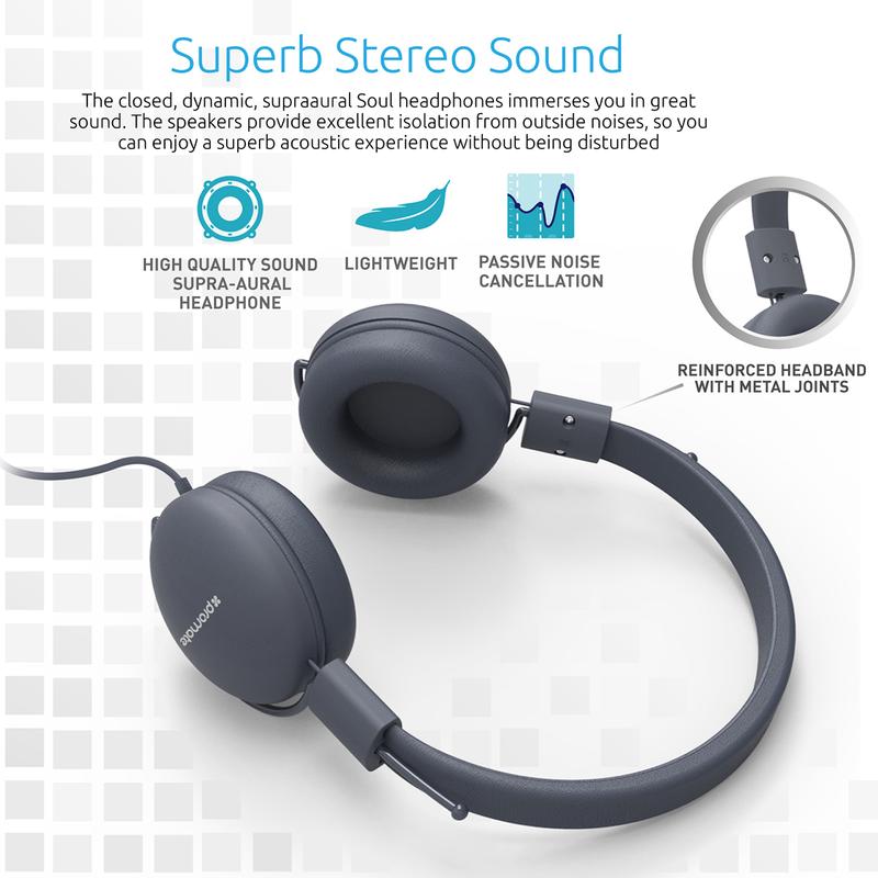 Promate Soul Casque filaire stéréo supra-aural léger