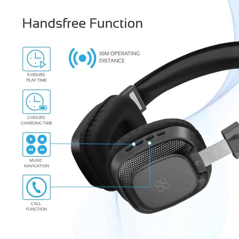 Vivez une fête musicale remarquable avec Melody-BT. Connectez Melody-BT à vos appareils sans fil et par le biais de fils traditionnels. Melody-BT inclut toutes les spécifications indispensables pour une excellente paire d’écouteurs. Melody-BT est doté de la technologie de suppression passive du bruit et d’un coussin d’oreille en cuir protéiné sophistiqué pour un confort optimal. Son design classique, simple en métal et en cuir ne manquera jamais de faire une déclaration de style où que vous alliez. Avec une durée de musique allant jusqu’à 5 heures, emportez Melody-BT pratiquement partout (y compris les longs vols) et écoutez de la musique non-stop. Melody-BT prend également en charge la fonction de musique en ligne et la fonction de micro intégrée, permettant ainsi de prendre des appels tout en écoutant de la musique. Ce micro-casque sans fil est le jeu ultime pour tous les fanatiques de musique. Marque: Promate. Modèle: MELODY-BT. Bluetooth : 4.0. Portée Bluetooth: jusqu’à 10 mètres. Temps d’utilisation: 5 heures. Temps de chargement : 2 heures. Temps d’attente: 180 heures.