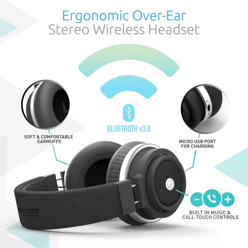 Perdez les fils, mais pas la qualité de la conversation. ce Casque bluetooth comporte un design d’oreillette ouvert pour délivrer un son naturel, une monture serre-nuque et un microphone dissimulé. Sans fil: où que vous soyez, restez connecté à votre son, toujours avec le casque stéréo astro sans fil.Casque Stéréo Sans fil Promate Astro - Bluetooth 3.0 - Autonomie jusqu'à 6 heures - Batterie 300mAh Lithium-polymère rechargeable - Temps de charge: 2 heures - Entrée: 3.7V - Sortie: 2x10mW - Impédance: 32Ω - Réponse de fréquence 20Hz ~ 20KHz - Sensibilité du micro: -38dB ± -3dB - Design ergonomique - Conception robuste - Couleur: Noir