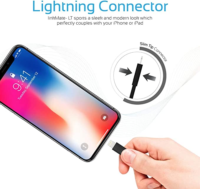 Câble Lightning vers USB certifié Apple MFi Premium pour charger et synchroniser vos appareils Apple® compatibles Lightning. Le câble Promate LinkMate Lightning sous licence MFi offre tout ce que vous recherchez dans un câble. DURÉE DE VIE DE PLUS DE 5 000 COULISSES - LES CÂBLES CASSÉS SONT MAINTENANT DE L'HISTOIRE Ne vous souciez plus des ruptures de câble car le linkMate-LT est doté d'une armure robuste qui le rend beaucoup plus résistant que les câbles conventionnels. Le câble de 1,2 m le rend idéal pour les personnes en déplacement. COMPACT ET PORTABLE Le câble Lightning vers USB de 1,2 m peut atteindre la distance parfaite tout en étant suffisamment compact pour être jeté dans un sac et partir. Il se branche sur n'importe quel port USB 2.0, vous pouvez donc l'utiliser pratiquement n'importe où. Connectez-vous à votre ordinateur portable pour charger et synchroniser, utilisez votre propre chargeur mural pour charger depuis le mur ou branchez-le sur un chargeur de voiture et chargez sur la route. CONNECTEUR LIGHTNING CERTIFIÉ APPLE MFI La certification Apple MFi (Made for iPhone, iPad et iPod) garantit une charge et une synchronisation complètes avec votre appareil Apple. Connectez l'adaptateur Lightning à votre appareil Apple et connectez le côté USB à un adaptateur mural ou à un concentrateur USB pour charger ou à votre ordinateur pour synchroniser les données. LARGEMENT COMPATIBLE Fonction de charge et de synchronisation stable pour tous les appareils prenant en charge le port Lightning, à savoir l'iPhone 6/6 Plus/5S/5C/5/SE, l'iPad Air/Air 2, l'iPad mini/mini 2/mini 3, l'iPad (4e génération), l'iPod Nano (7e génération) et iPod touch (5e génération). La tête de connecteur Lightning ultra-mince est spécialement conçue et conçue pour un ajustement parfait sur la plupart des étuis iPhone/iPad de marque. SYNCHRONISATION RAPIDE ET CHARGE Ce câble est fabriqué à partir d'un matériau en cuivre revêtu de PVC Flex Shield qui offre une transmission de données et une charge de qualité supérieure. Les fils de large diamètre et la résistance réduite du cordon permettent la vitesse de synchronisation ou de charge la plus rapide possible.