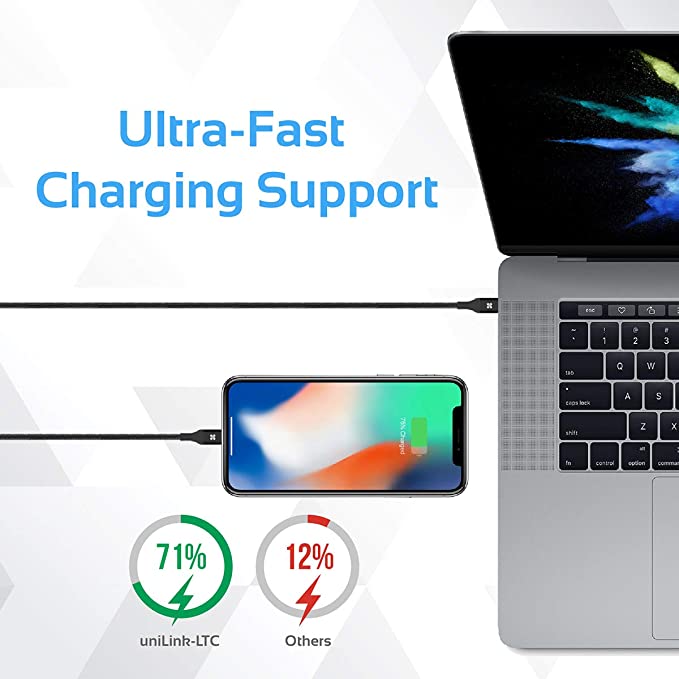 UniLink-LTC ™ vous permet de synchroniser rapidement des photos, de la musique et des données sur votre ordinateur portable / PC existant. De plus, le câble prend également en charge une puissance de sortie maximale de 2,4 A permettant un chargement rapide des appareils. UniLink-LTC ™ a été forgée à partir de matériaux de qualité supérieure pour une durabilité optimale. Le nylon résistant à l’abrasion agit comme une veste extérieure minimisant les dommages dus au frottement. Cette force est encore renforcée par sa conception intelligente. Tout cela garantit aux produits finaux la capacité de résister aux routines exigeantes et d’être au-delà des attentes.longueur 120cm Sortie 2.4 A max Compatibilité Tous les périphériques connectés USB-C et Lightning.