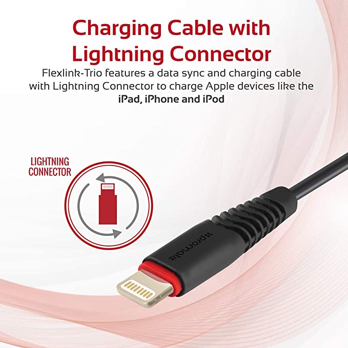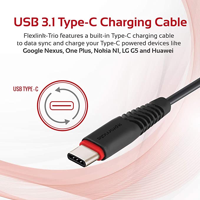 Flexlink-Trio est un kit USB multifonctionnel complet pour bon nombre de vos gadgets de style de vie. Il comprend trois embouts de charge et de synchronisation différents que vous pouvez facilement échanger. Utilisez ce kit pour tous vos besoins quotidiens tels que la connexion à votre smartphone, Lightning Connector ou des appareils compatibles USB Type-C pour une charge, un transfert de données rapide, une synchronisation de fichiers et bien plus encore. Flexlink-Trio est créé de manière unique à partir d'un matériau PVC durable, favorisant un fonctionnement sûr et protégé. Avec Flexlink-Trio, vous pouvez oublier tous les câbles que vous devez transporter pour vos différents appareils. Faites confiance à Flexlink-Trio pour tout. sur le marché. Ne soyez plus jamais sans solution de charge avec ce câble de poche mais formidablement riche en fonctionnalités. Le câble de charge 3 en 1 élimine le besoin de transporter plusieurs câbles pour vos appareils mobiles. Offrant un connecteur Lightning pour votre iPhone ou iPad, un connecteur USB-C pour votre nouveau téléphone ou tablette et un connecteur Micro-USB pour vos anciens appareils mobiles, c'est le câble idéal pour tous vos besoins de charge mobile. Connecteur Micro USB : Bien que de plus en plus d'appareils adoptent la norme USB-C, un grand nombre de téléphones utilisent encore Micro USB comme connecteur - y compris le Samsung Galaxy S7, S7 Edge, J3 et J5 2017, ainsi que la plupart des téléphones de Motorola. Gamme Moto, entre autres. Le connecteur micro USB de haute qualité de ce câble est parfait pour charger ces appareils. Connecteur Lightning : tous les appareils iPhone d'Apple, de l'iPhone 5 au dernier iPhone d'Apple Comme l'iPhone X, 8, 8 Plus, utilisez la norme Lightning - un connecteur réversible avec de grandes vitesses de charge qui se trouve également être inclus avec ce câble. Connecteur USB-C : avec de plus en plus de smartphones, de tablettes et même de consoles de jeux (Nintendo Switch) utilisant la norme USB-C, le connecteur USB-C supérieur de ce câble protège ce câble et garantit que vous pourrez l'utiliser pour de nombreuses personnes, nombreux cycles de vie des appareils à venir. Ce câble est parfait pour une utilisation avec des appareils tels que le Samsung Galaxy Note 8, S8 et S8 Plus, ainsi que le LG G6, Google Pixel, HTC U11, OnePlus 5 et plus. Chargez 3 appareils en même temps : le câble robuste Promate 3 en 1 vous permet de connecter un USB-C, Lightning et un appareil Micro USB en même temps pour les charger tous simultanément - réduisant le nombre de câbles que vous devez emporter avec vous et sans avoir à prioriser un appareil par rapport à un autre. L'USB standard fonctionne avec tous les ports USB alimentés : tout ce que vous avez à faire pour charger avec ce câble est de brancher le connecteur correspondant à votre appareil, puis de connecter l'extrémité USB standard à n'importe quel port USB alimenté, y compris les ordinateurs, les chargeurs muraux USB, les concentrateurs USB. et plus. Permet la charge et la synchronisation simultanées de votre appareil : ce câble de charge 3 en 1 de haute qualité vous permet de connecter votre appareil Lightning, Type-C ou Micro USB à votre ordinateur portable/ordinateur afin de charger votre téléphone et d'échanger/synchroniser des données simultanément. . Design durable : conçu pour résister à l'extérieur, le câble robuste Promate FlexLink-Trio est extrêmement durable et dispose d'un boîtier en polycarbonate. Tandis que la base de décharge de traction flexible garantit qu'elle ne se casse pas lorsqu'elle est utilisée et pliée pendant de longues périodes. Conception de cou flexible "ExoFlex": Conçu de manière créative, le FlexLink-Trio est doté de la technologie ExoFlex. Cette technologie fournit au FlexLink-Trio un col flexible qui assure une durée de vie de plus de 4000 plis, améliorant ainsi considérablement sa durabilité et assurant une sécurité totale. Câble portable robuste sans enchevêtrement : la conception du câble robuste mais mince rend l'utilisation du câble plus facile que jamais et le matériau robuste et résistant signifie qu'il est non seulement beaucoup moins susceptible d'être endommagé, mais il est également plus difficile à emmêler. Avec 1,2 m de long, il fonctionnera admirablement, vous donnera une distance raisonnable entre les appareils et le rendra également très portable. Glissez-le dans votre sac ou votre poche et ayez-le à portée de main lorsque vous en avez le plus besoin. La petite tête fonctionne avec la plupart des coques : le câble Lightning ultra-compact est non seulement assez petit pour s'adapter parfaitement à la plupart des coques d'appareils, mais il est également assez solide pour résister aux débranchements et stockages répétés. Protection complète avec Smart IC : permet à FlexLink-Trio de fournir un environnement de charge intelligent, sûr et efficace. En utilisant des puces intelligentes améliorées, le FlexLink-Trio identifie l'appareil et fournit un courant de charge personnalisé et précis, la vitesse de charge est augmentée de 35 %. Il protège également vos appareils contre les surcharges et les courts-circuits. On n'est jamais trop prudent avec ses précieux gadgets. Longueur de 1,2 m - Idéal pour la plupart des situations : la longueur de 1,2 m de ce câble garantit qu'il n'est pas trop long pour gêner ou faire trébucher, mais pas si court que vous ne pourrez pas utiliser votre appareil pendant le chargement. Le câble USB FlexLink-Trio peut atteindre la distance parfaite tout en étant suffisamment compact pour être jeté dans un sac et partir. Largement compatible avec les appareils : largement applicable dans l'interface IP, la micro-interface et l'interface de type C de la plupart des équipements. Compatibilité avec iPhone X, iPhone 8/8Plus, iPhone 7/7Plus, Samsung Note 8, Samsung Galaxy S8/S8 Plu