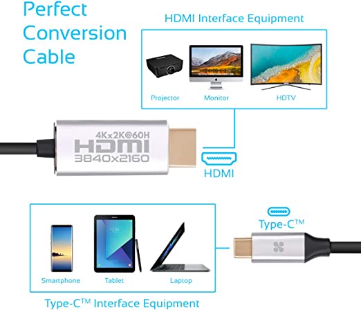 connectez simplement l'extrémité HDMI du câble à votre téléviseur ou autre moniteur. Une fois la première étape terminée, connectez simplement votre câble au port USB-C de votre ordinateur. Plug-and-play, aucun adaptateur ou pilote/logiciel requis. La solution parfaite pour votre USB-C MacBook Pro / MacBook, iMac, Surface Book 2, Pixel book, HP Envy 13, Galaxy Book et Chromebook, pilotez un ou deux moniteurs/écrans HDMI, jusqu'à 4K à une résolution de 60 Hz.