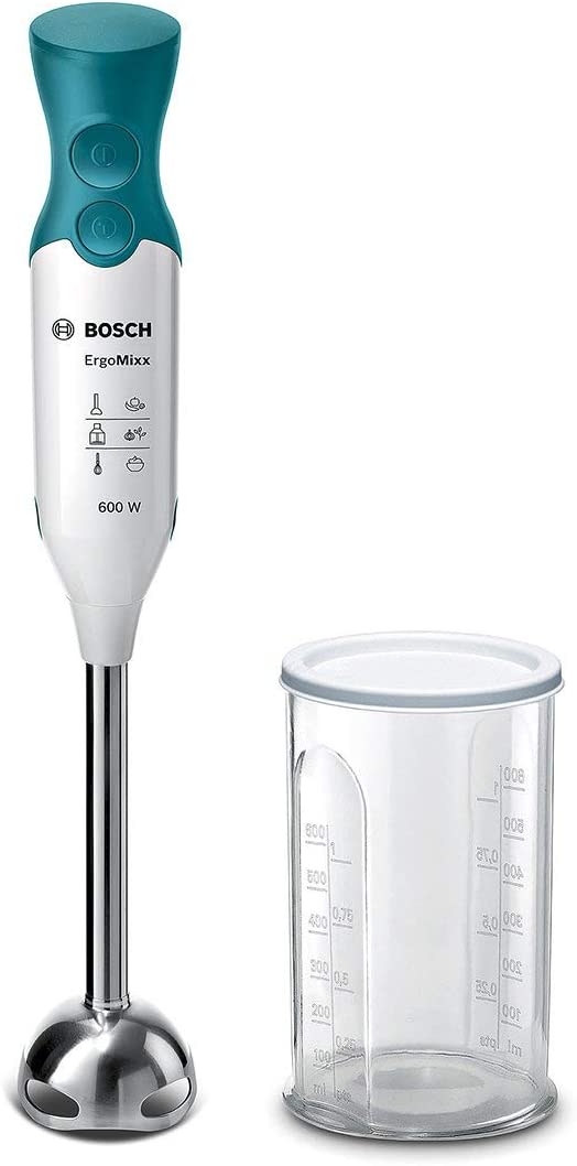 Marque Bosch Electroménager Couleur Blanc/Bleu Turquoise Matériau Plastique Style Mixeur-Plongeur Puissance 600 Watts Voltage 240 Volts Description du produit : Bosch MSM66110D Matériau du manche : Acier inoxydable Tension d'entrée AC : 220 - 240 V Fréquence d'entrée AC : 50 - 60 Hz Source d'énergie : Courant alternatif Largeur : 5,5 cm Profondeur : 6,2 cm Hauteur : 39,3 cm