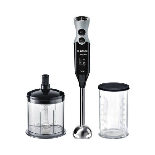 Bras Mixeur MSM67140 ErgoMixx Mixeur plongeant, 750 W, Noir ErgoMixx ■ Mixeur plongeant ■ 750 W ■ Mixeur en acier inoxydable avec lame quadruple QuattroBlade ■ Commande de vitesse - 12 réglages + turbo ■ Fonctionnement confortable: poignée souple, gros boutons, forme ergonomique ■ Hachoir XL ■ Pichet mélangeur ■ Couleur: noir / gris Moteur puissant de 750 W: idéal pour traiter des ingrédients durs et piloter une grande variété d'accessoires. Le couteau QuattroBlade à quatre lames garantit des résultats parfaits et empêche le mélange des aliments d'éclabousser. Ergonomique et facile à utiliser: le boîtier léger avec une poignée douce au toucher assure une position confortable et sûre de la main pendant le travail. Contrôle de la vitesse en douceur dans les 12 paramètres suggérés. Fonction supplémentaire de l'opération Turbo. Hachoir inclus: grâce à lui, vous pouvez hacher les herbes, les noix, le fromage et le chocolat beaucoup plus rapidement et plus facilement. Nouvelle forme pour une utilisation facile et confortable, poids léger et revêtement anti-dérapant soft-touch. Variateur de 12 vitesses + touche turbo pour adapter la vitesses au type de préparation Hachoir grand format pour hacher finement tous les aliments : condiments, herbes, oignons, viande… Moteur puissant de 750 watts pour des résultats rapides et parfaits Pied mixeur inox avec 4 lames aiguisées pour des préparations onctueuses et homogènes